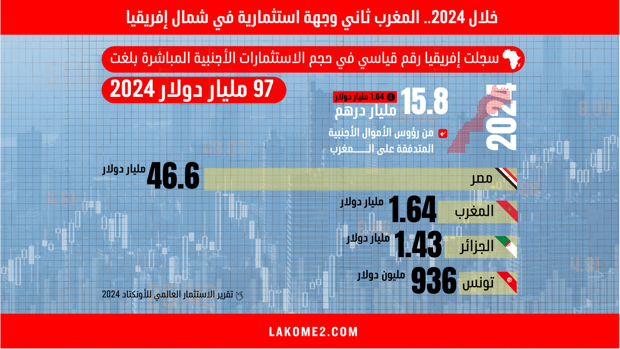 أنفوغرافيك | خلال 2024.. المغرب ثاني وجهة استثمارية في شمال إفريقيا