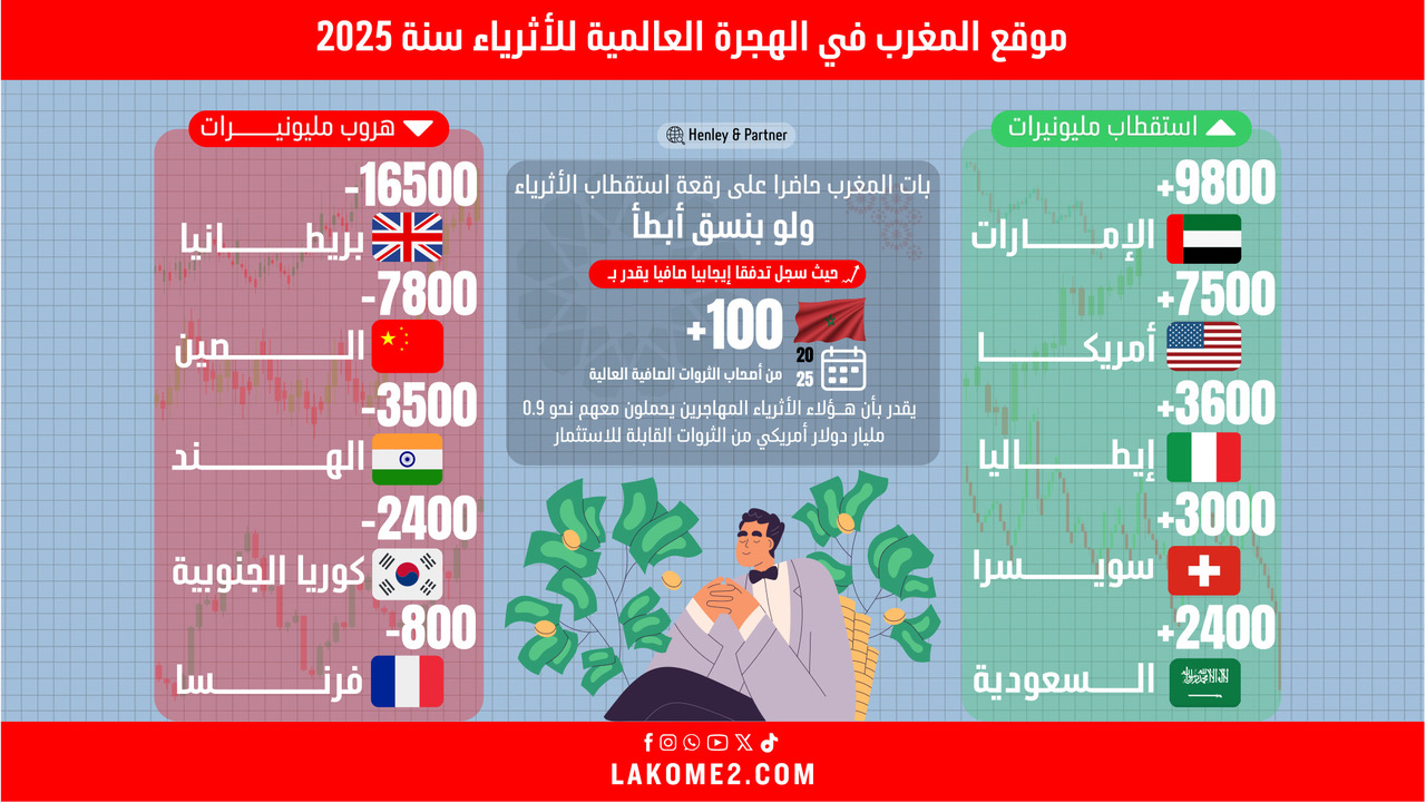 أنفوغرافيك | موقع المغرب في الهجرة العالمية للأثرياء سنة 2025