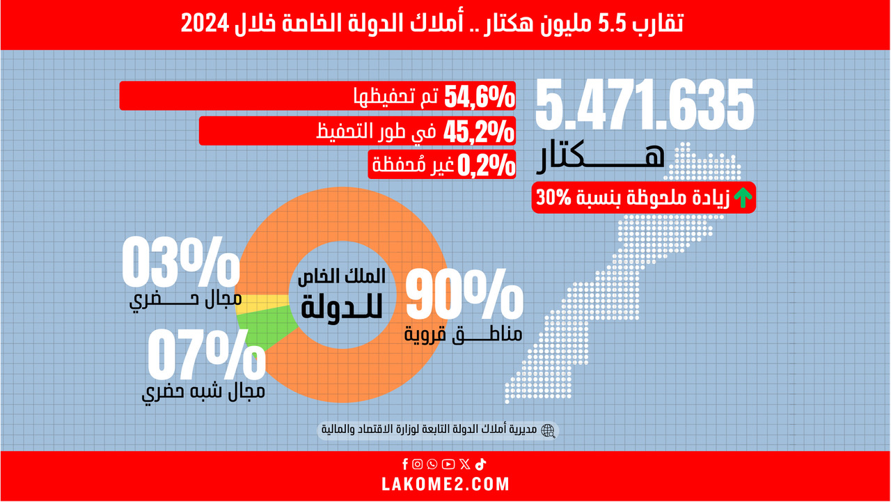 أنفوغرافيك | تقارب 5.5 مليون هكتار .. أملاك الدولة الخاصة خلال 2024