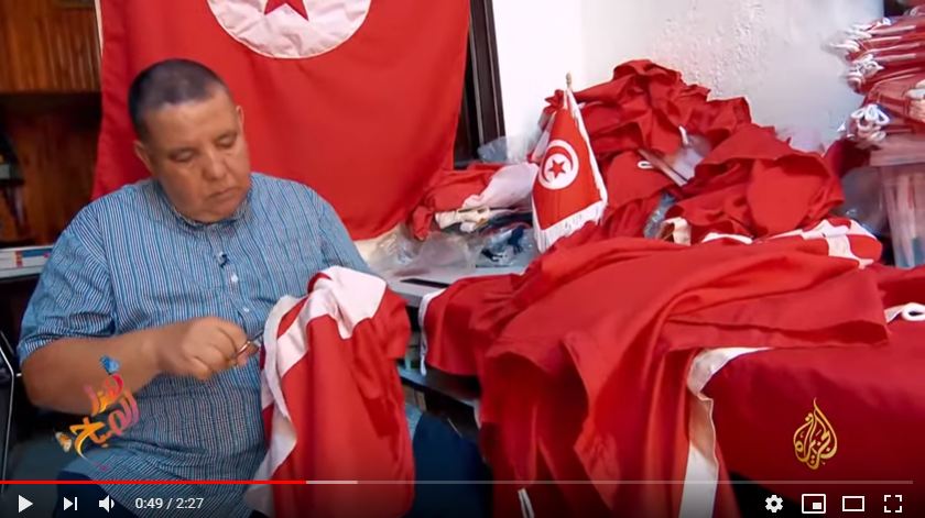 محل يشتهر بخياطة العلم التونسي