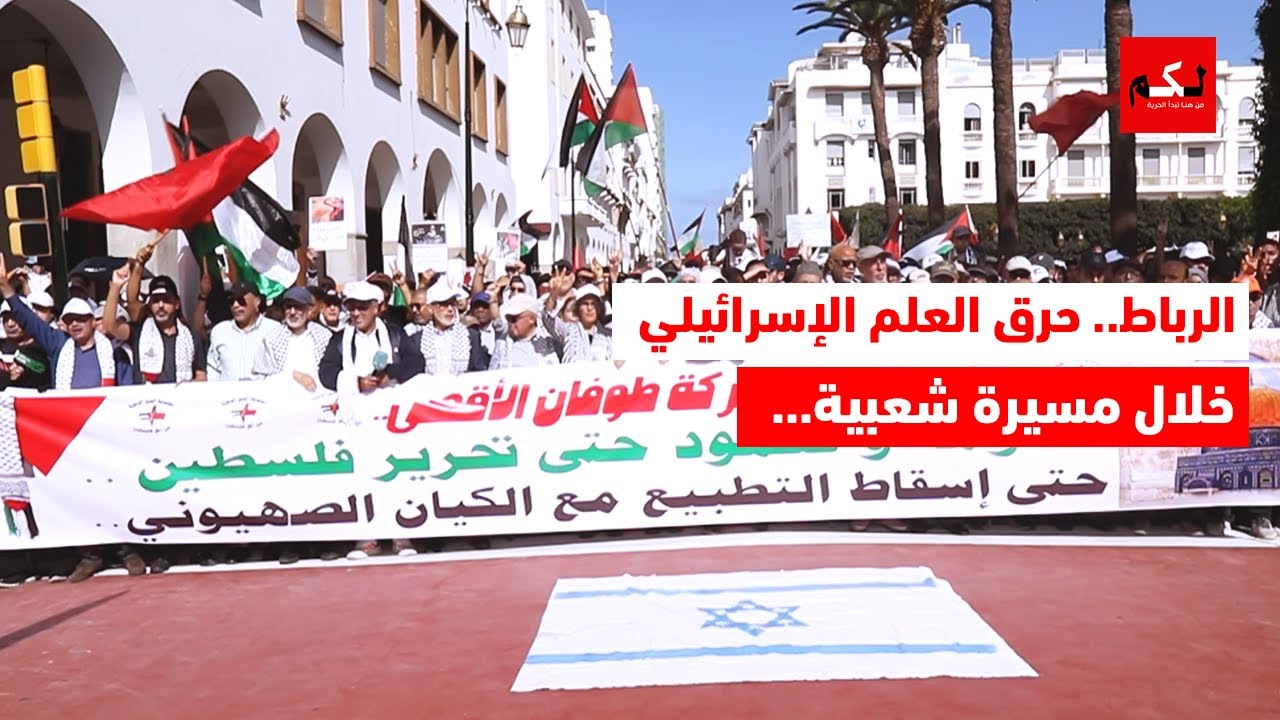 الرباط.. حرق العلم الإسرائيلي خلال مسيرة شعبية دعما لغزة
