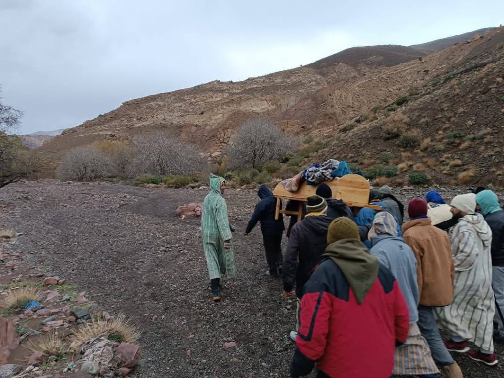 نقل مريضة على نعش بإحدى دواوير المغرب