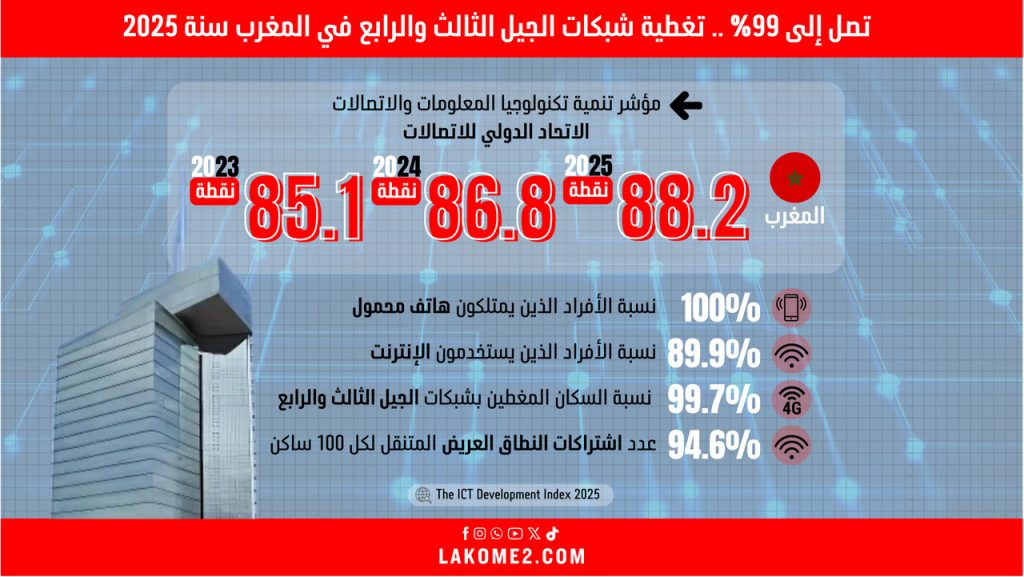 أنفوغرافيك | تصل إلى 99% .. تغطية شبكات الجيل الثالث والرابع في المغرب سنة 2025‎