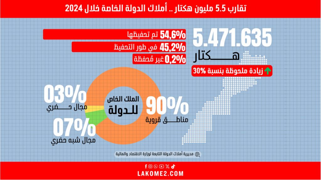 أنفوغرافيك | ⁨تقارب 5.5 مليون هكتار .. أملاك الدولة الخاصة خلال 2024 ⁩‎