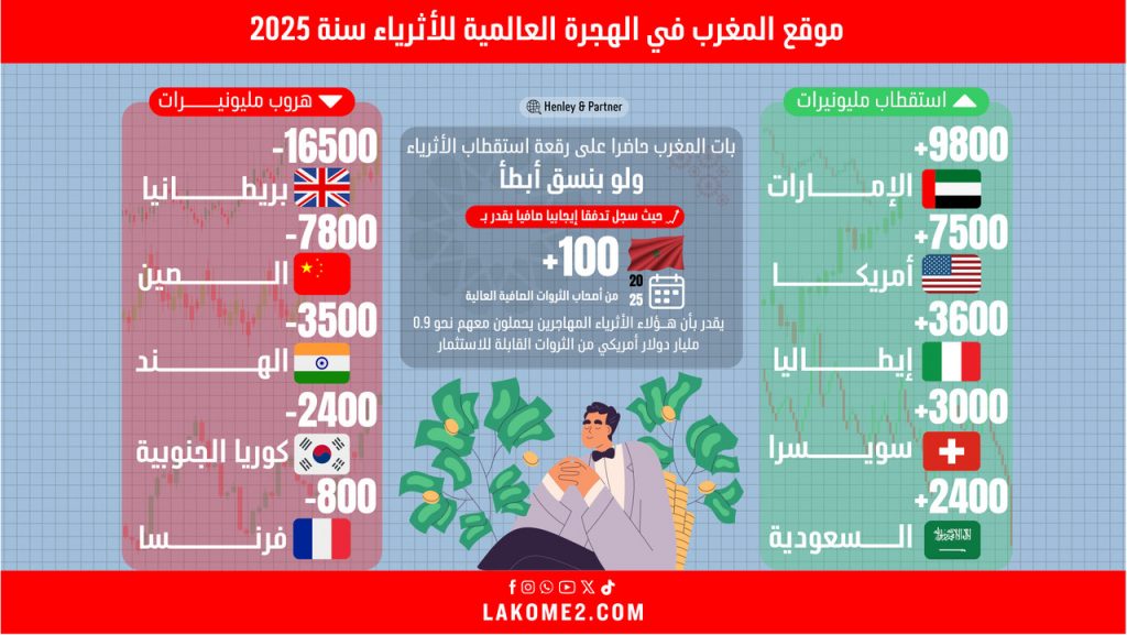 أنفوغرافيك | موقع المغرب في الهجرة العالمية للأثرياء سنة 2025‎