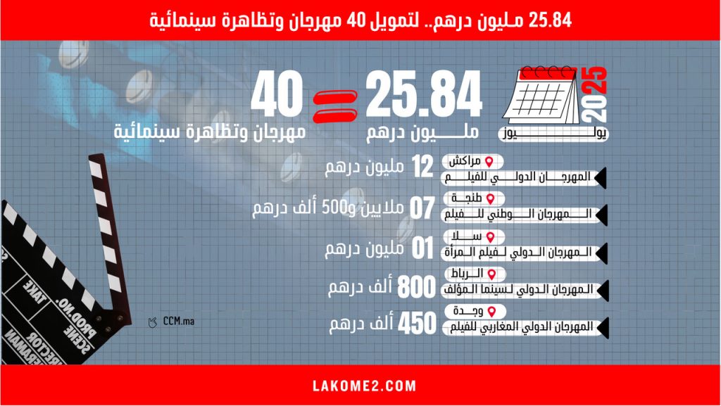 أنفوغرافيك | 25.84 مـليون درهم.. لتمويل 40 مهرجان وتظاهرة سينمائية ‎