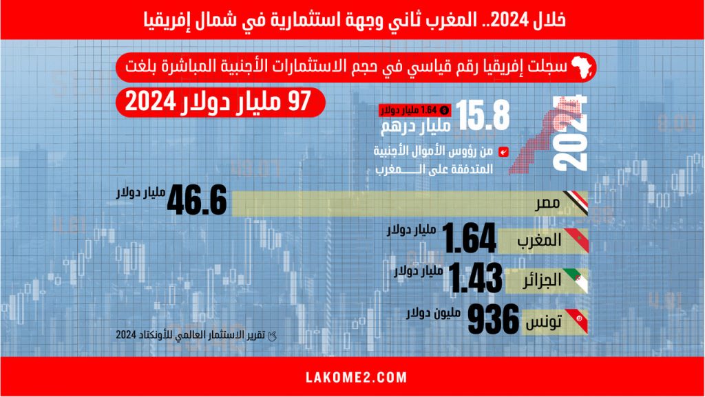 أنفوغرافيك | خلال 2024.. المغرب ثاني وجهة استثمارية في شمال إفريقيا ‎