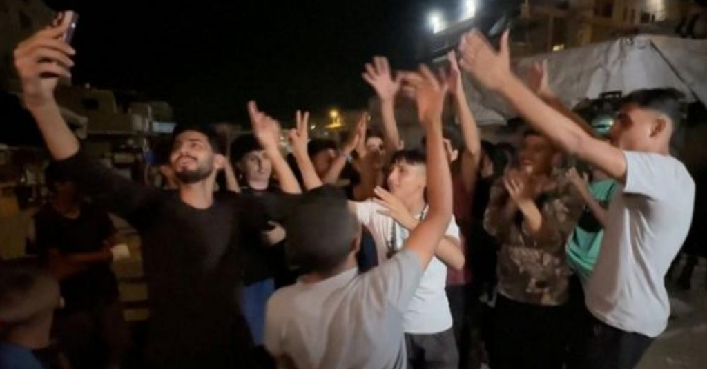 شبان يحتفلون بالإعلان عن التوصل لاتفاق في خانيونس