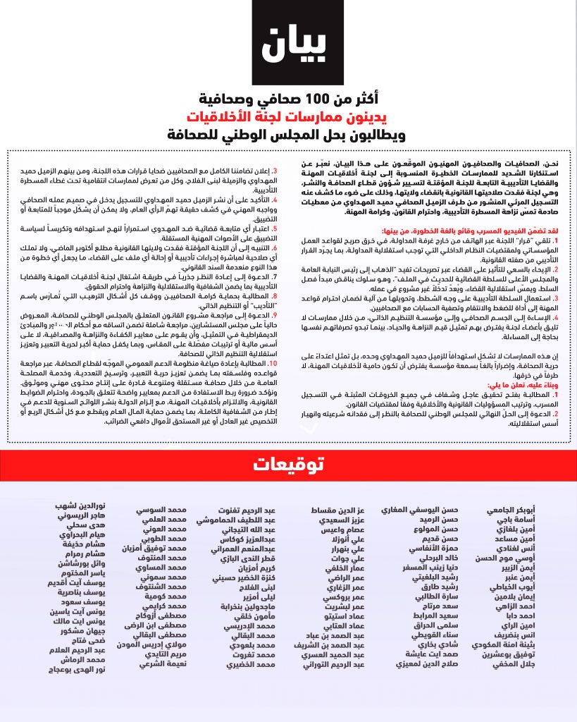 عشرات الصحفيين يندّدون بـ”خروقات جسيمة” داخل لجنة أخلاقيات الصحافة ويدعون إلى تحقيق عاجل