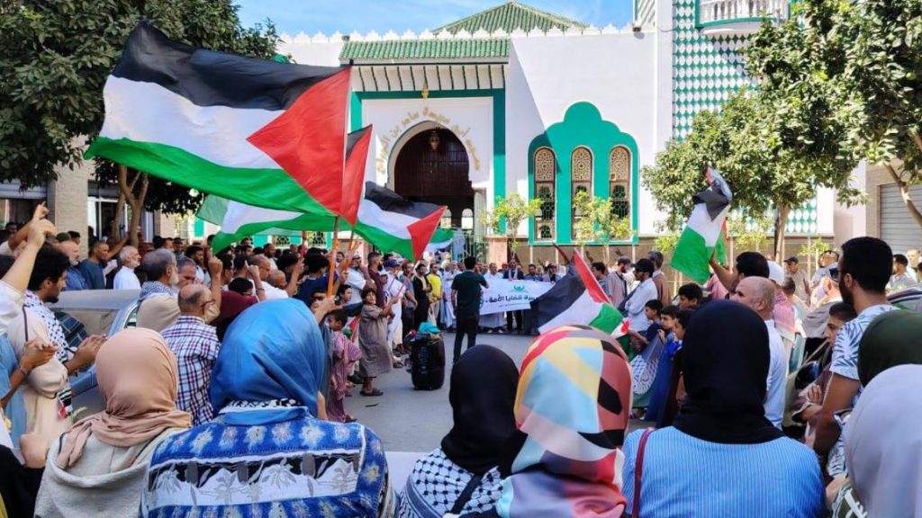 مئات المغاربة يتظاهرون في تطوان تضامنا مع غزة ومساندة لأسطول الصمود