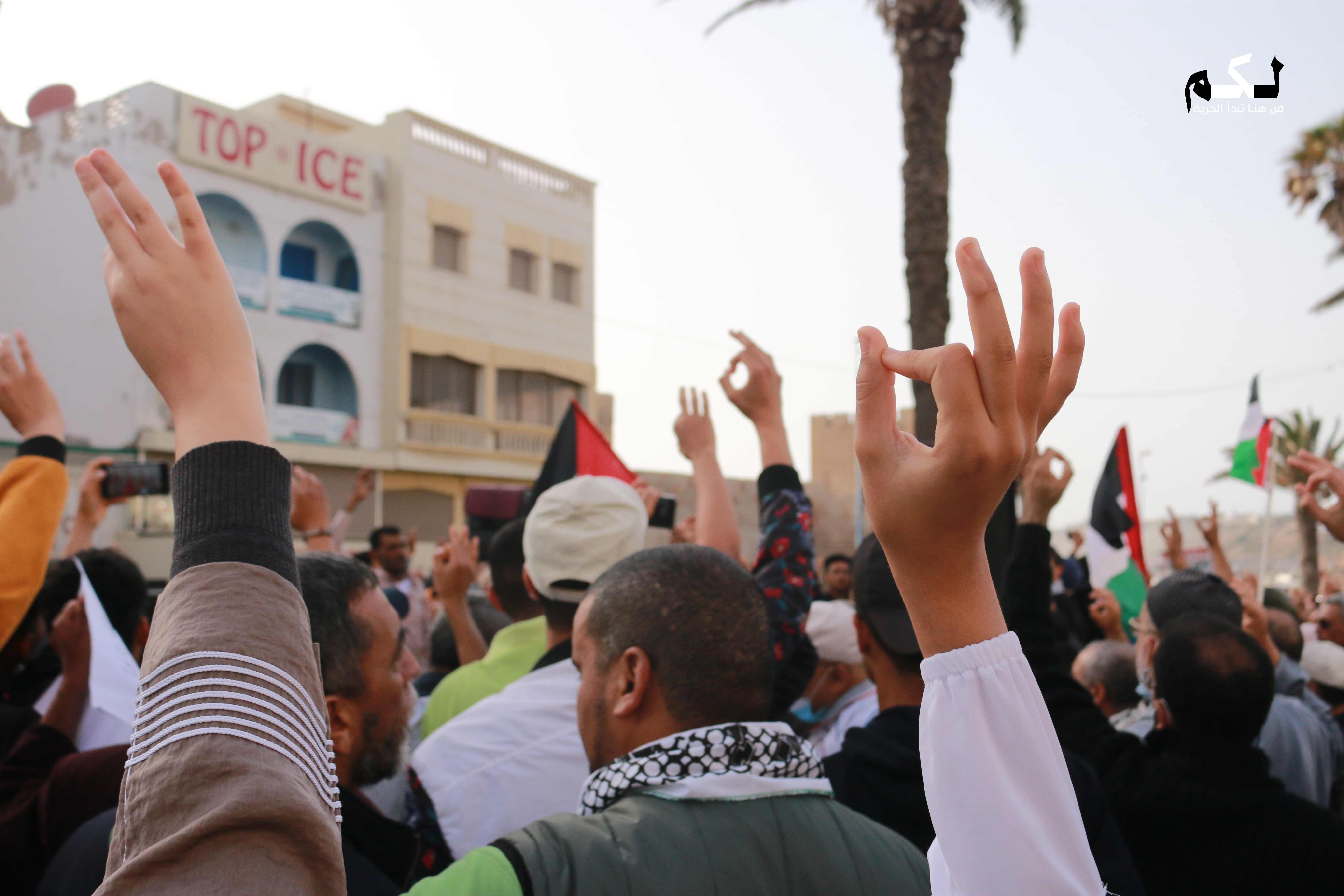 متظاهرون في آسفي نصرة لفلسطين يحرقون العلم الإسرائيلي ويطالبون بإلغاء اتفاقيات التطبيع (صور + فيديو)