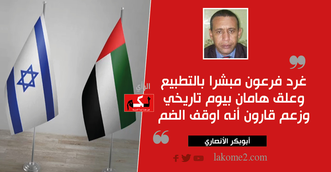 غرد فرعون مبشرا بالتطبيع وعلق هامان بيوم تاريخي وزعم قارون أنه اوقف الضم