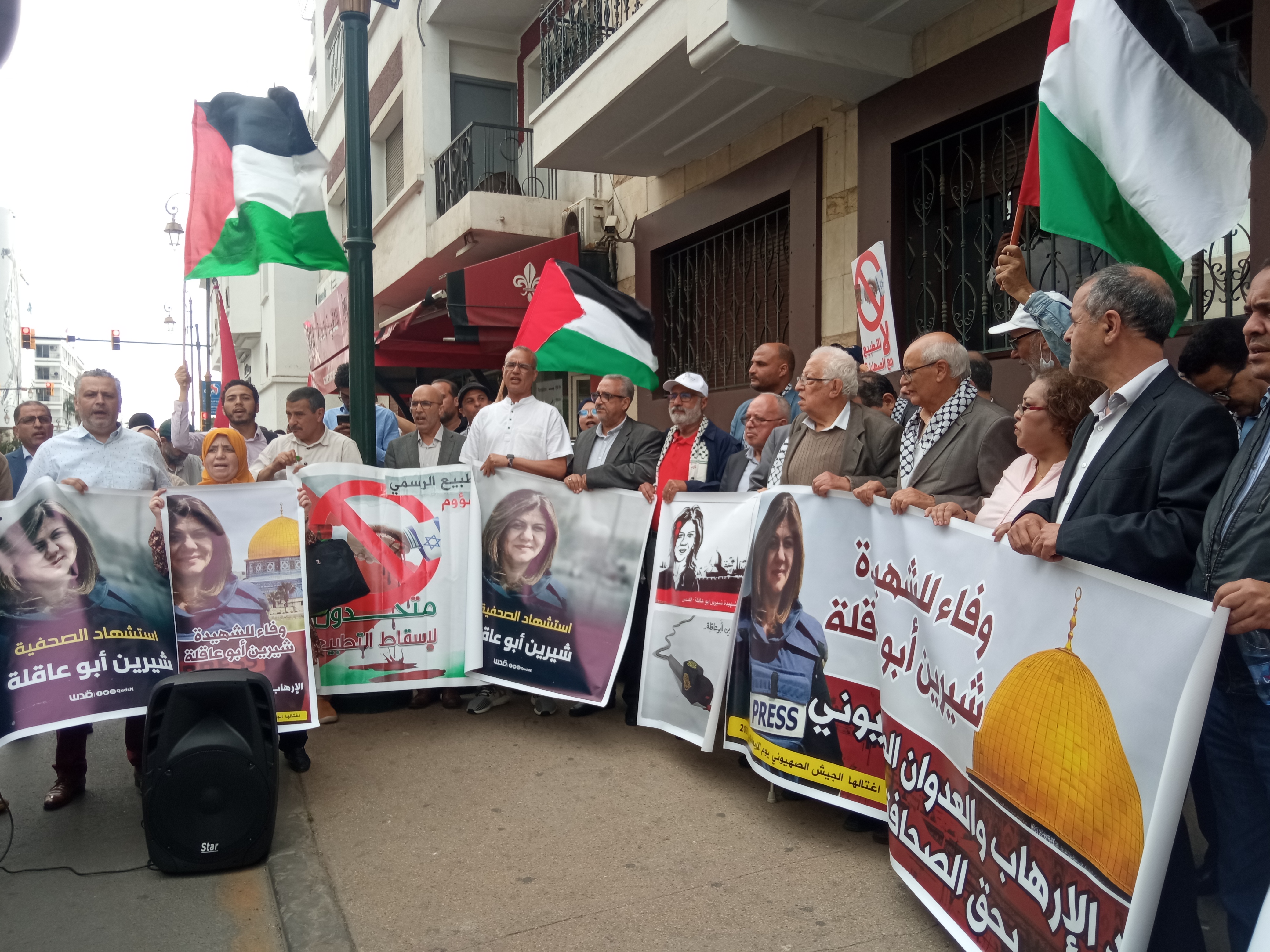 نشطاء ينددون باغتيال الصحافية “أبو عاقلة” أمام سفارة فلسطين بالرباط ويطالبون بإسقاط التطبيع
