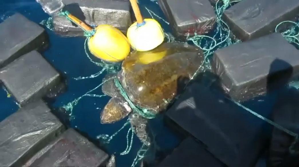 خفر السواحل ينقذ سلحفاة مكبلة بـ 800 كلغ من الكوكايين (+فيديو)