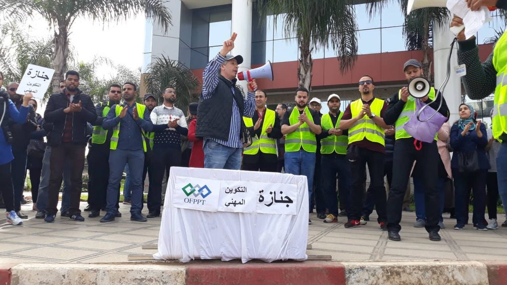 نقابيو التكوين المهني يحتجون أمام البرلمان تنديدا بالاحتقان الذي يعيشه القطاع