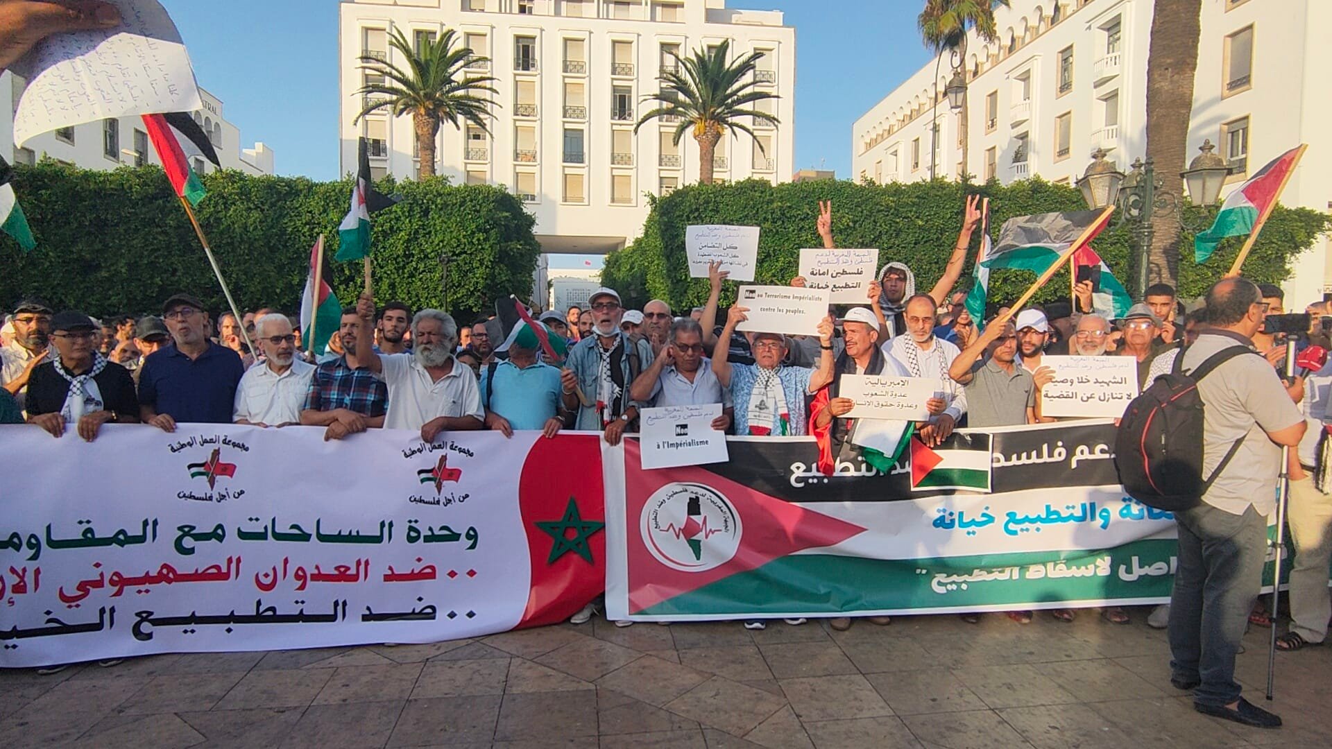 مناهضو التطبيع مع إسرائيل يتظاهرون في الرباط تضامنا مع الفلسطينيين (صور وفيديو)