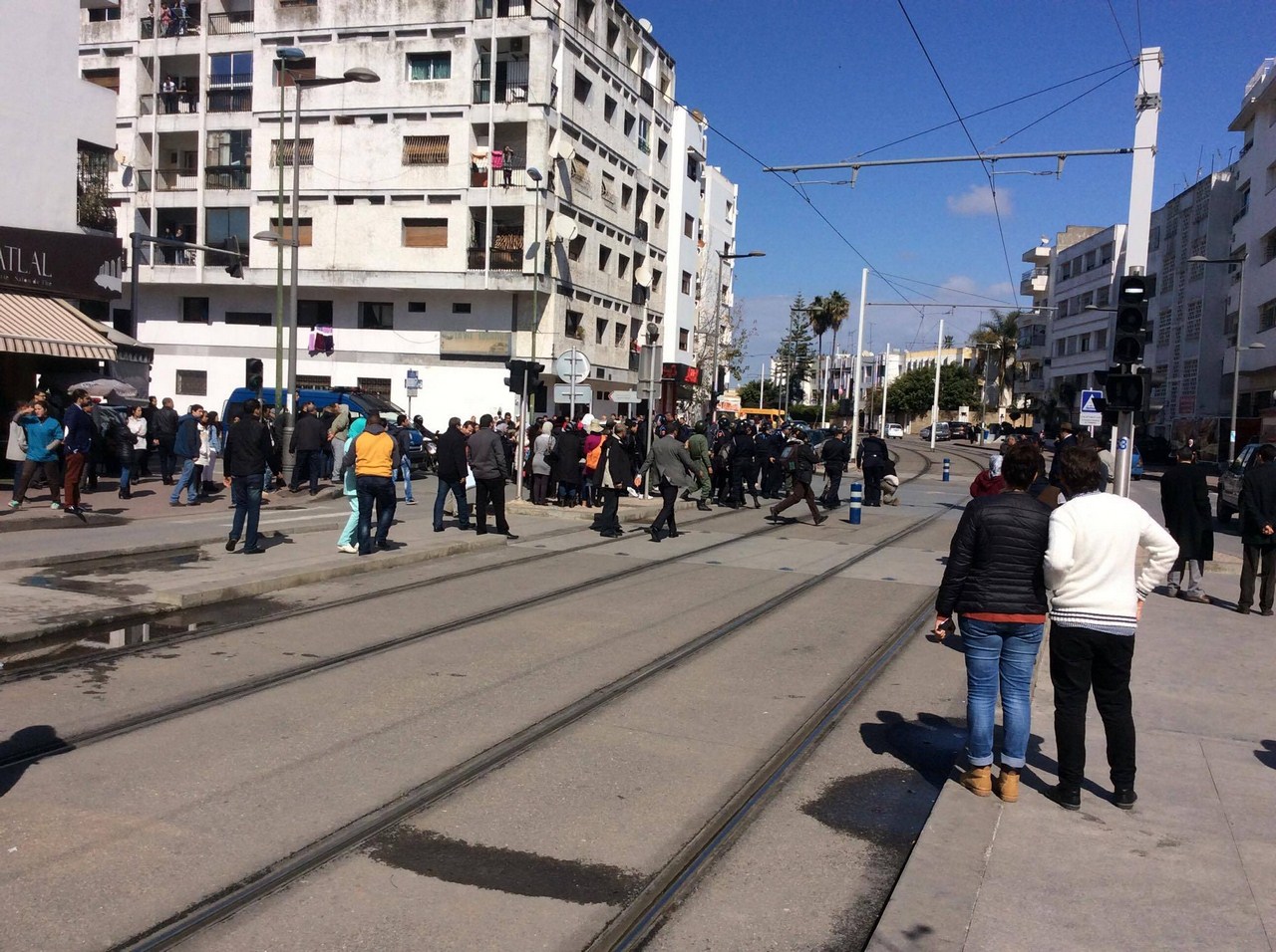 مكفوفون معطلون يلعبون بـ"الموت" تحت عربة "طرامواي" الرباط للمطالبة بالشغل (+فيديو)