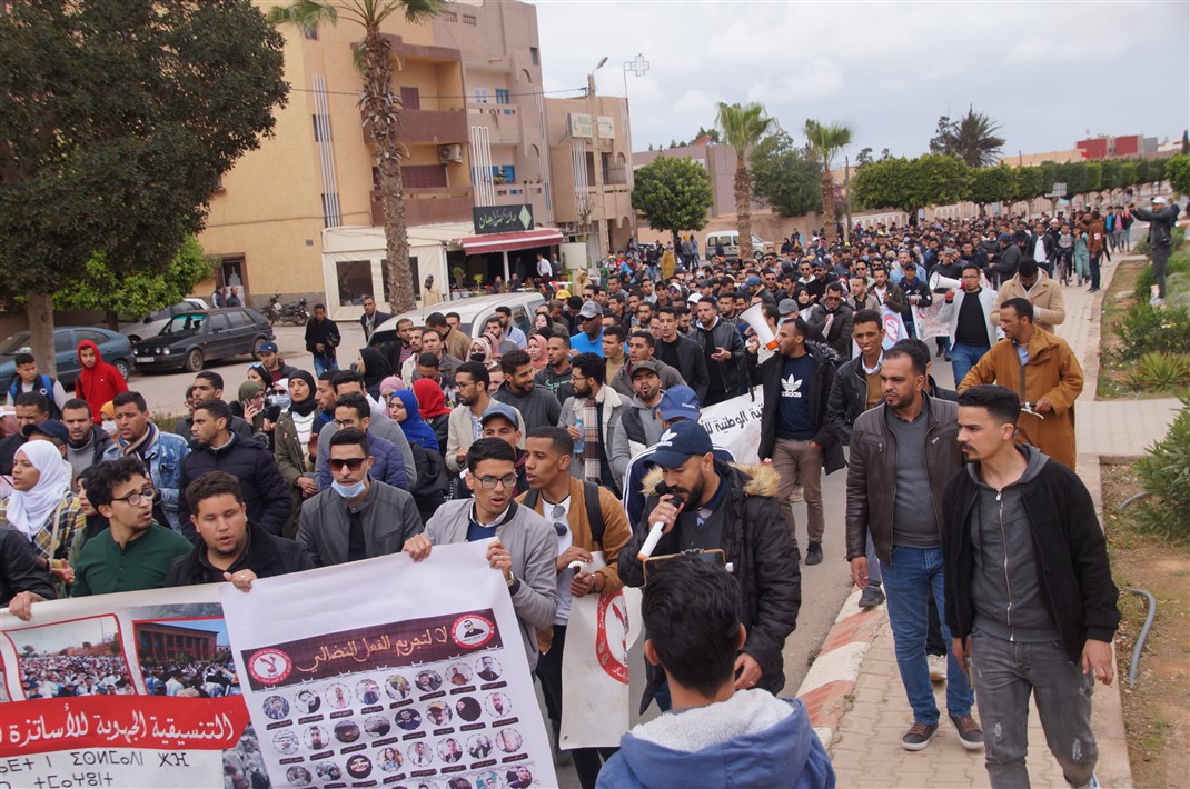 مئات “أساتذة التعاقد” يحتجون في مسيرة جهوية بتيزنيت ويطالبون بإدماجهم