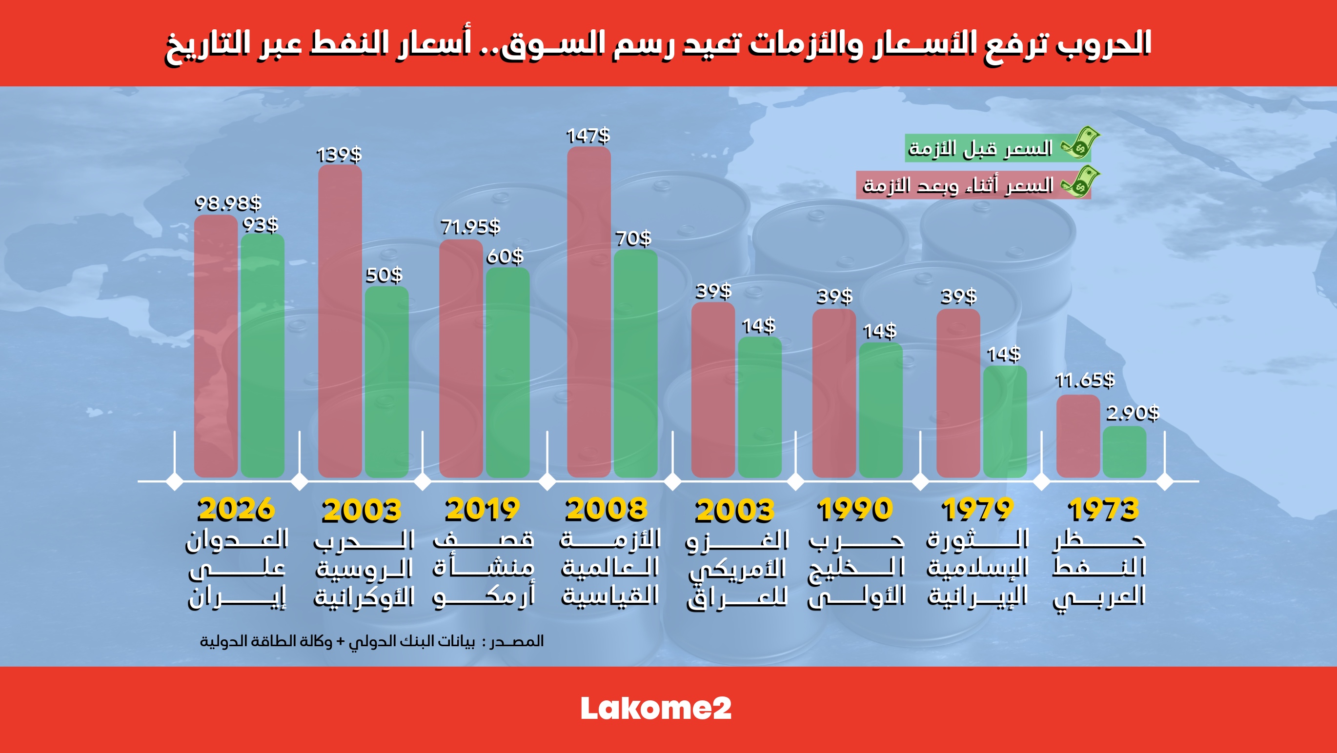 أنفوغرافيك | الحروب ترفع الأسعار والأزمات تعيد رسم السوق.. أسعار النفط عبر التاريخ