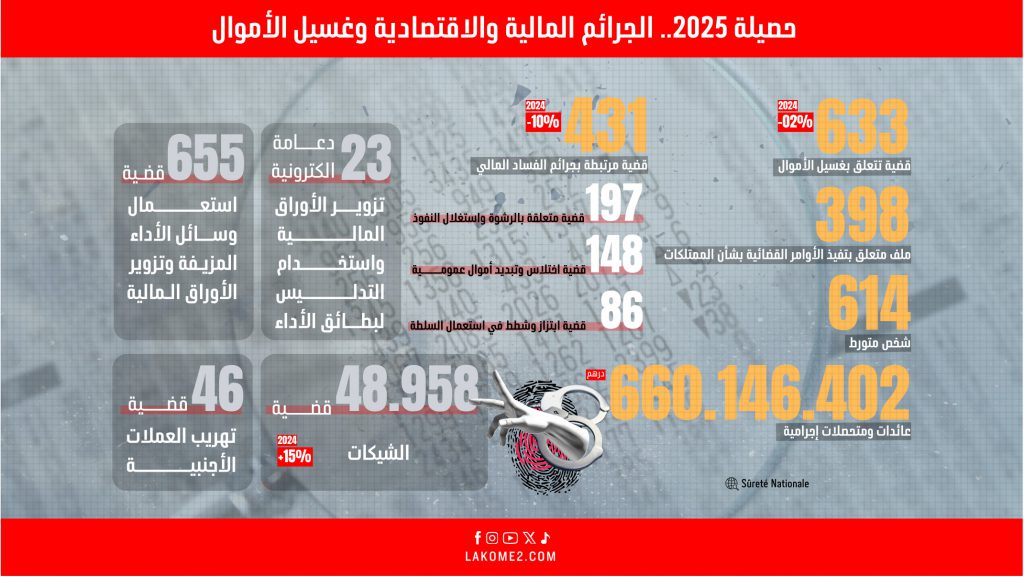 أنفوغرافيك | حصيلة 2025.. الجرائم المالية والاقتصادية وغسيل الأموال‎