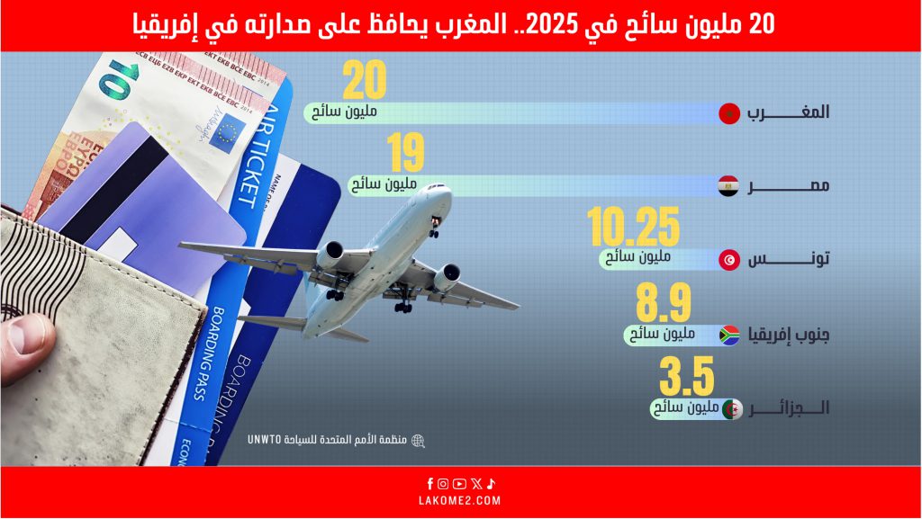 أنفوغرافيك | المغرب يعزز صدارته السياحية إفريقيا خلال 2025