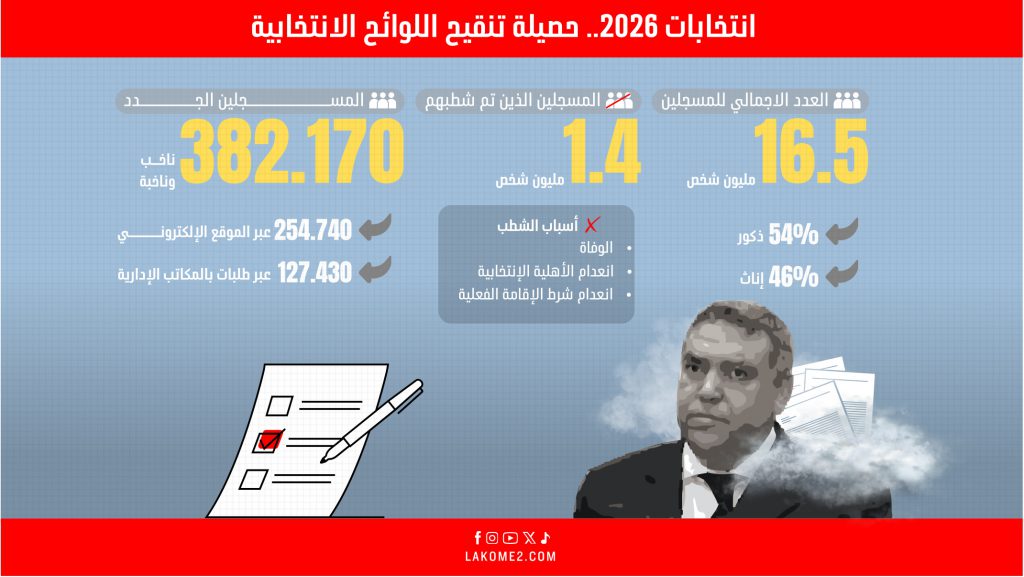 أنفوغرافيك | انتخابات 2026.. حصيلة تنقيح اللوائح الانتخابية‎