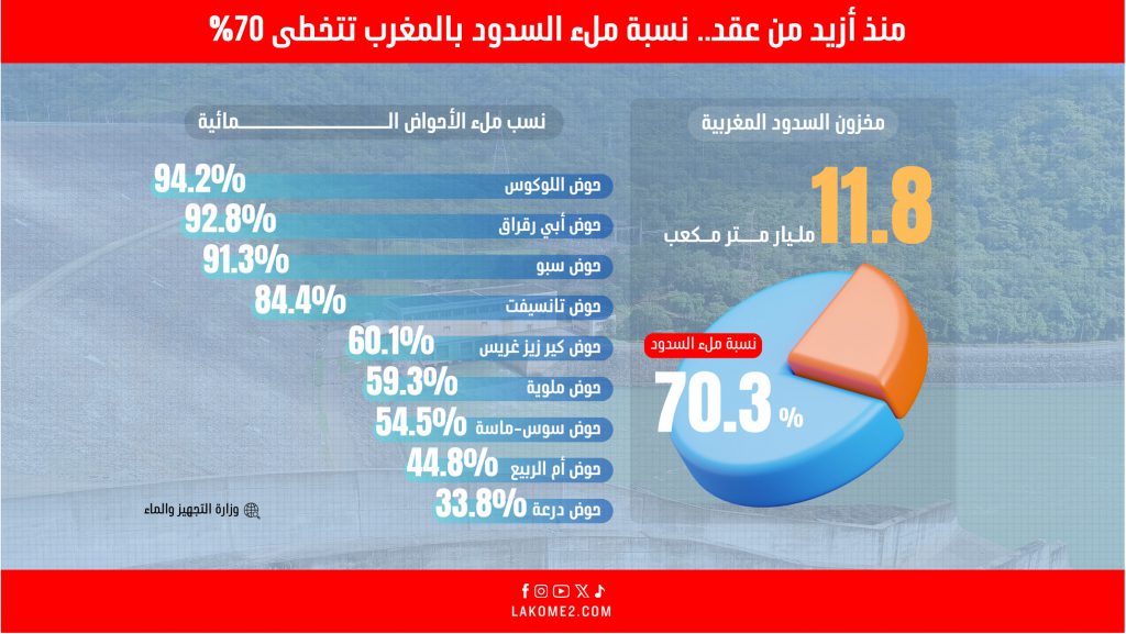 أنفوغرافيك | منذ أزيد من عقد.. نسبة ملء السدود بالمغرب تتخطى 70% ‎