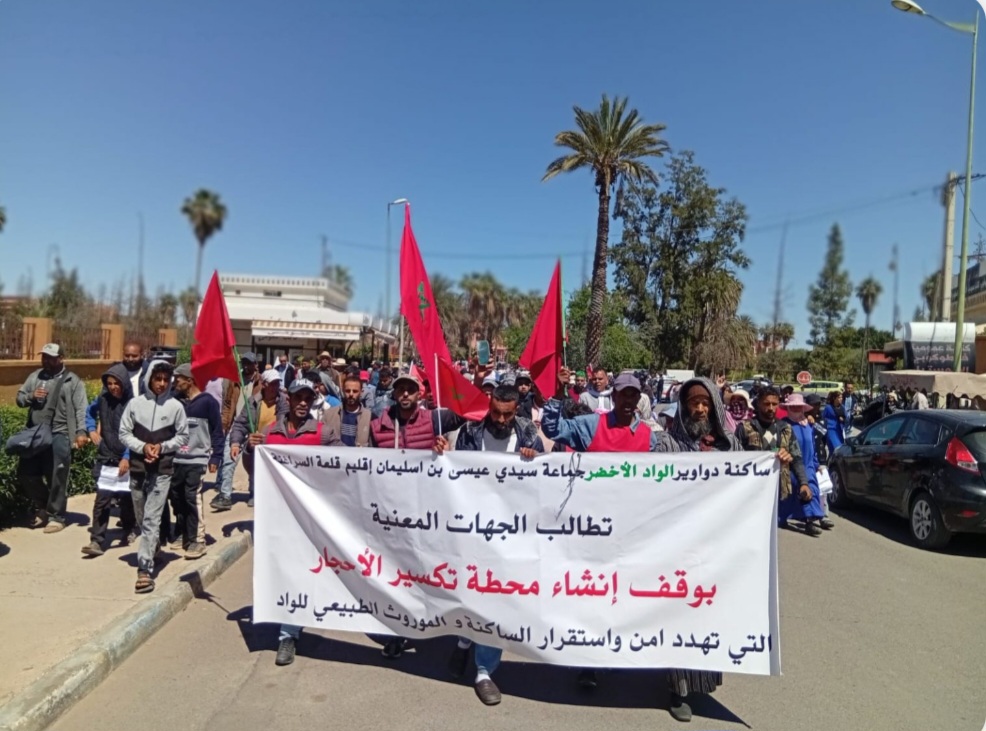 حقوقيون يستنكرون الأحكام القاسية بحق محتجين من قلعة سراغنة رفضوا إحداث محطة تكسير أحجار قرب سكناهم