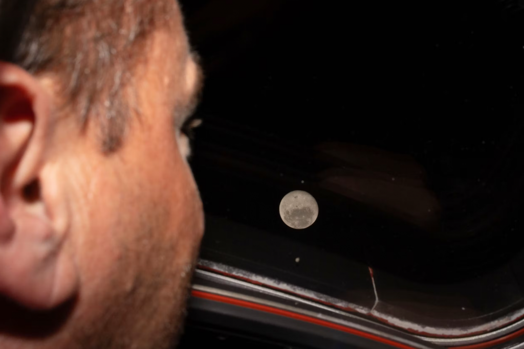قائد مهمة "أرتيميس 2"، يتأمل القمر عبر إحدى نوافذ مركبة "أوريون"
